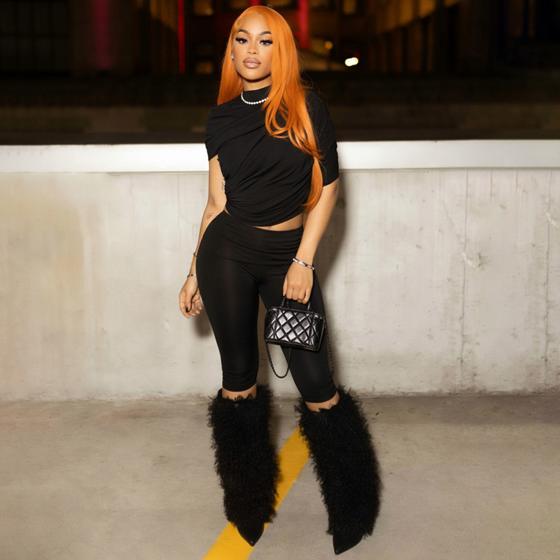 Home / Women Spring Sexy Draped Top and Capri Pants Two-Piece Set