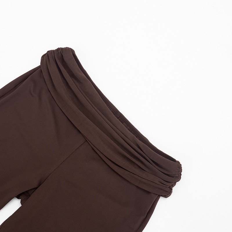 Women Spring Sexy Draped Top and Capri Pants Two-Piece Set