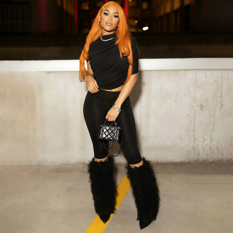 • Women Spring Sexy Draped Top and Capri Pants Two-Piece Set