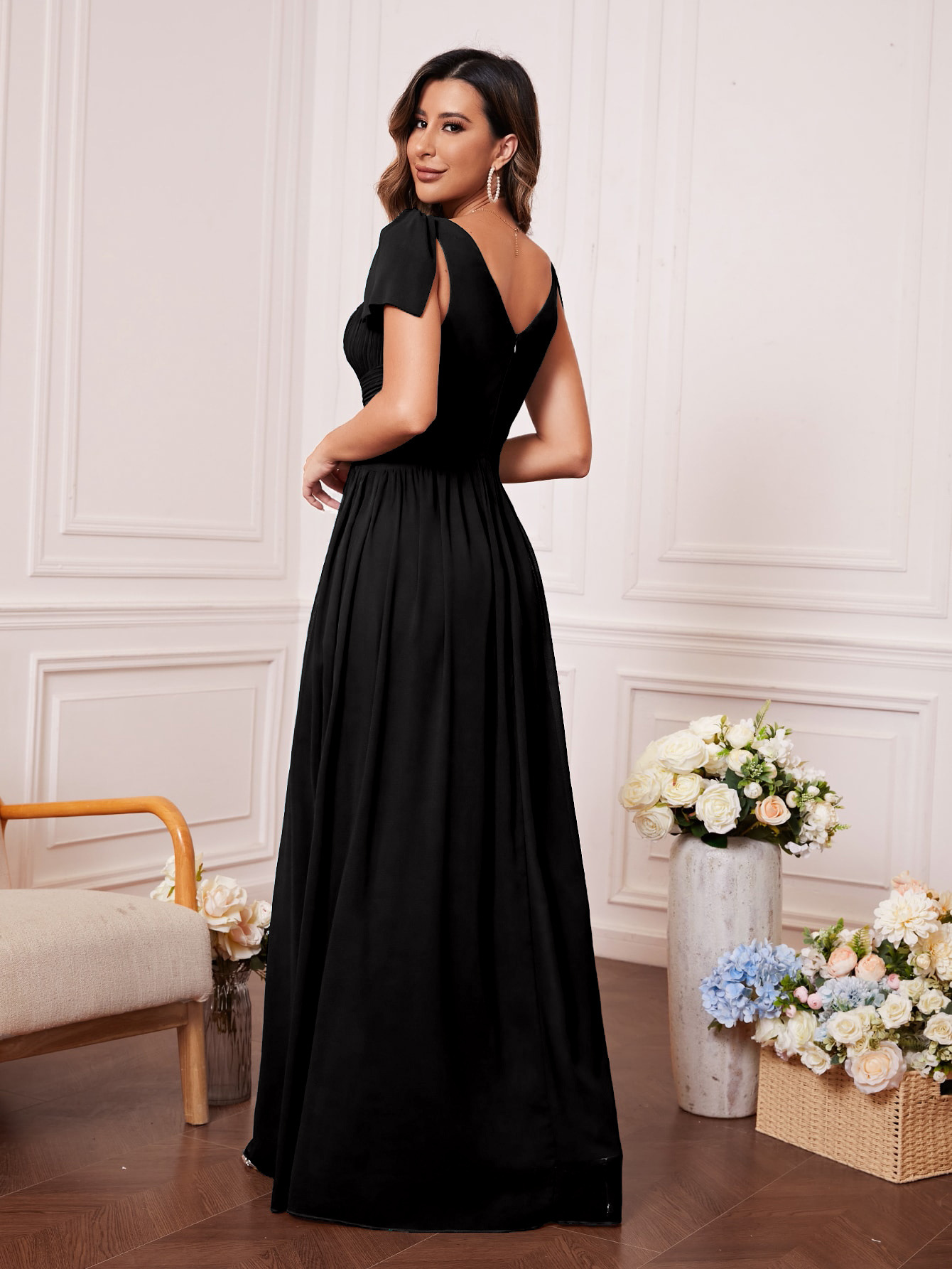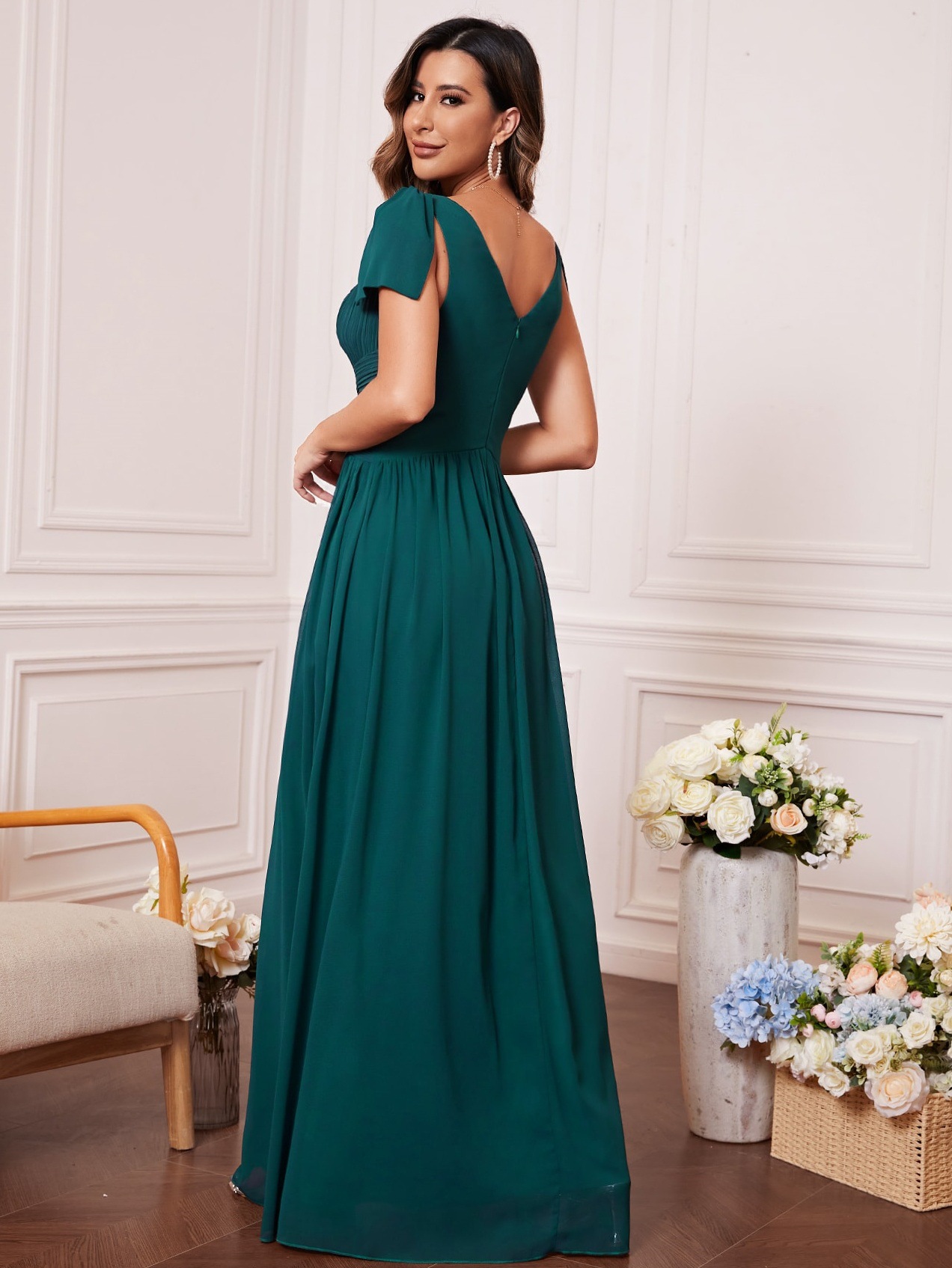 • Women V-Neck Prom Bridesmaid Dress