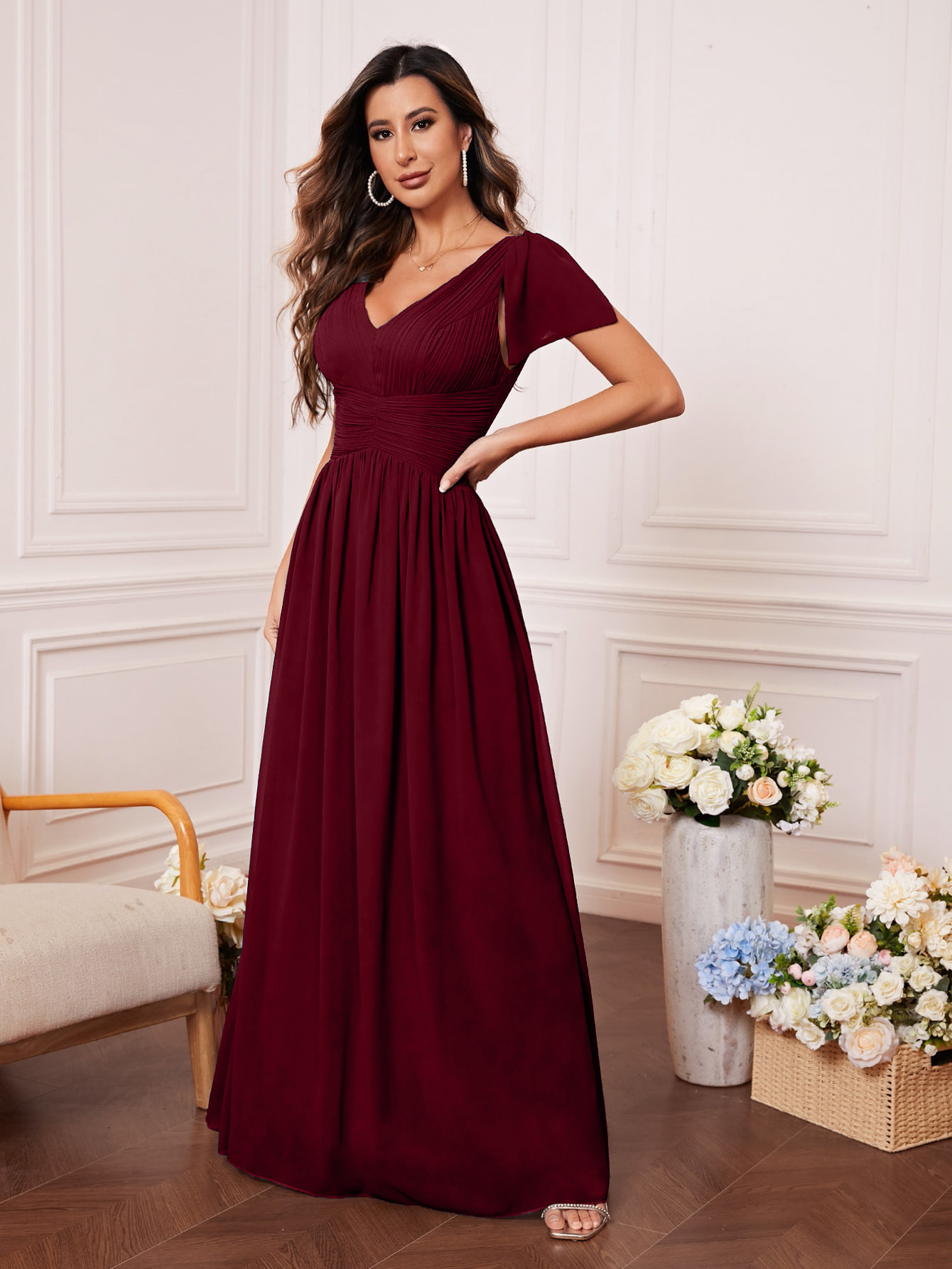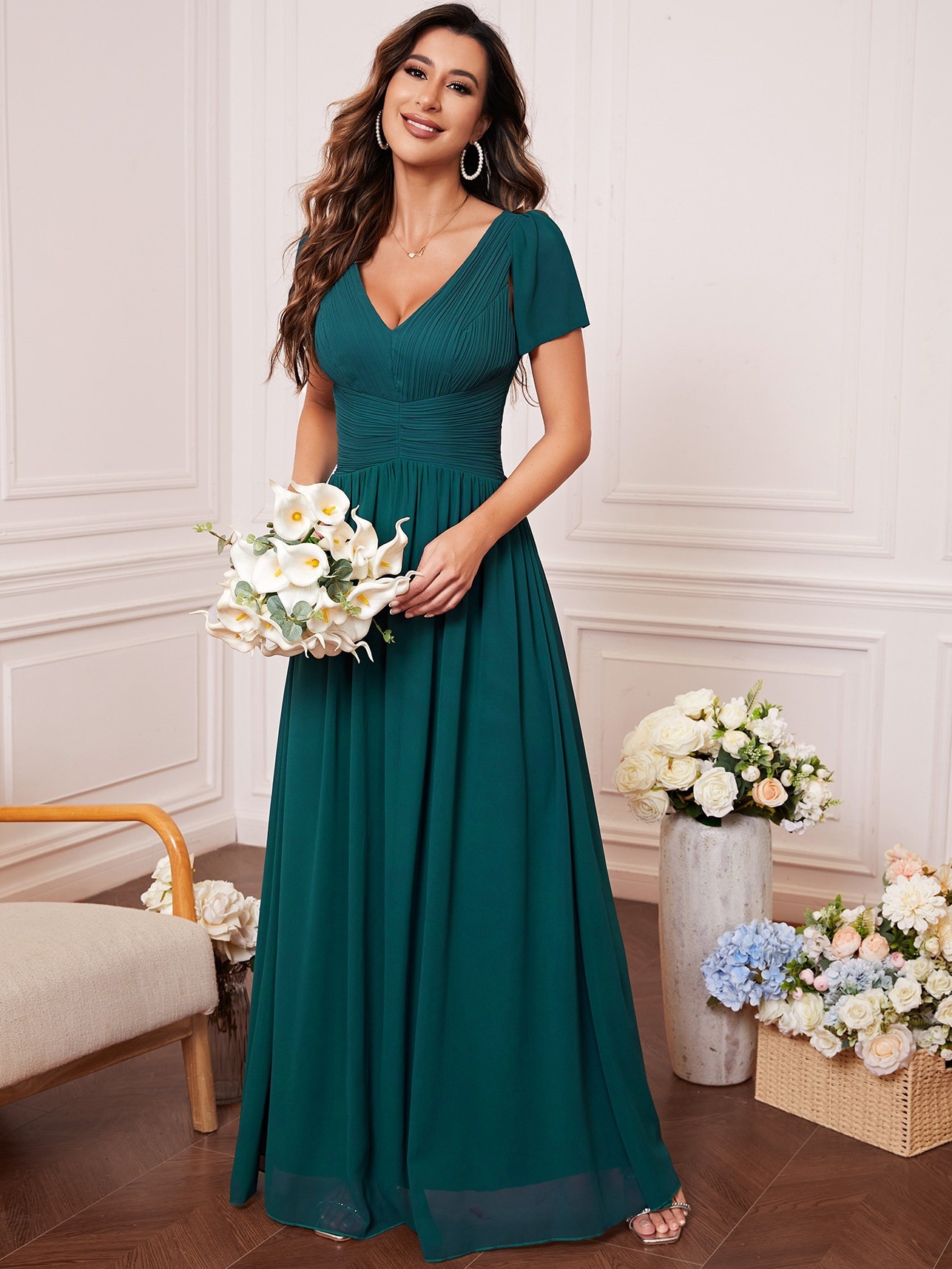 Women V-Neck Prom Bridesmaid Dress